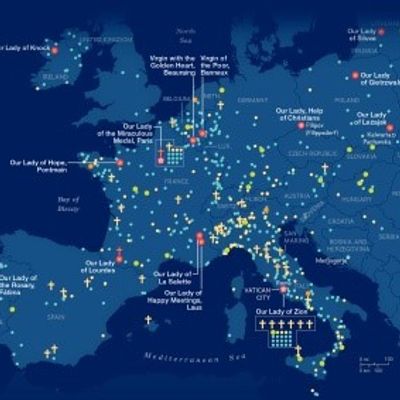 For centuries, the Virgin Mary has appeared to the faithful, requesting devotion and promising comfort. These maps show the geography of Marian apparitions – the handful approved by the Vatican, and many others. Historically, Europe is where most apparitions have been reported, but the U.S. is pretty fertile ground too.